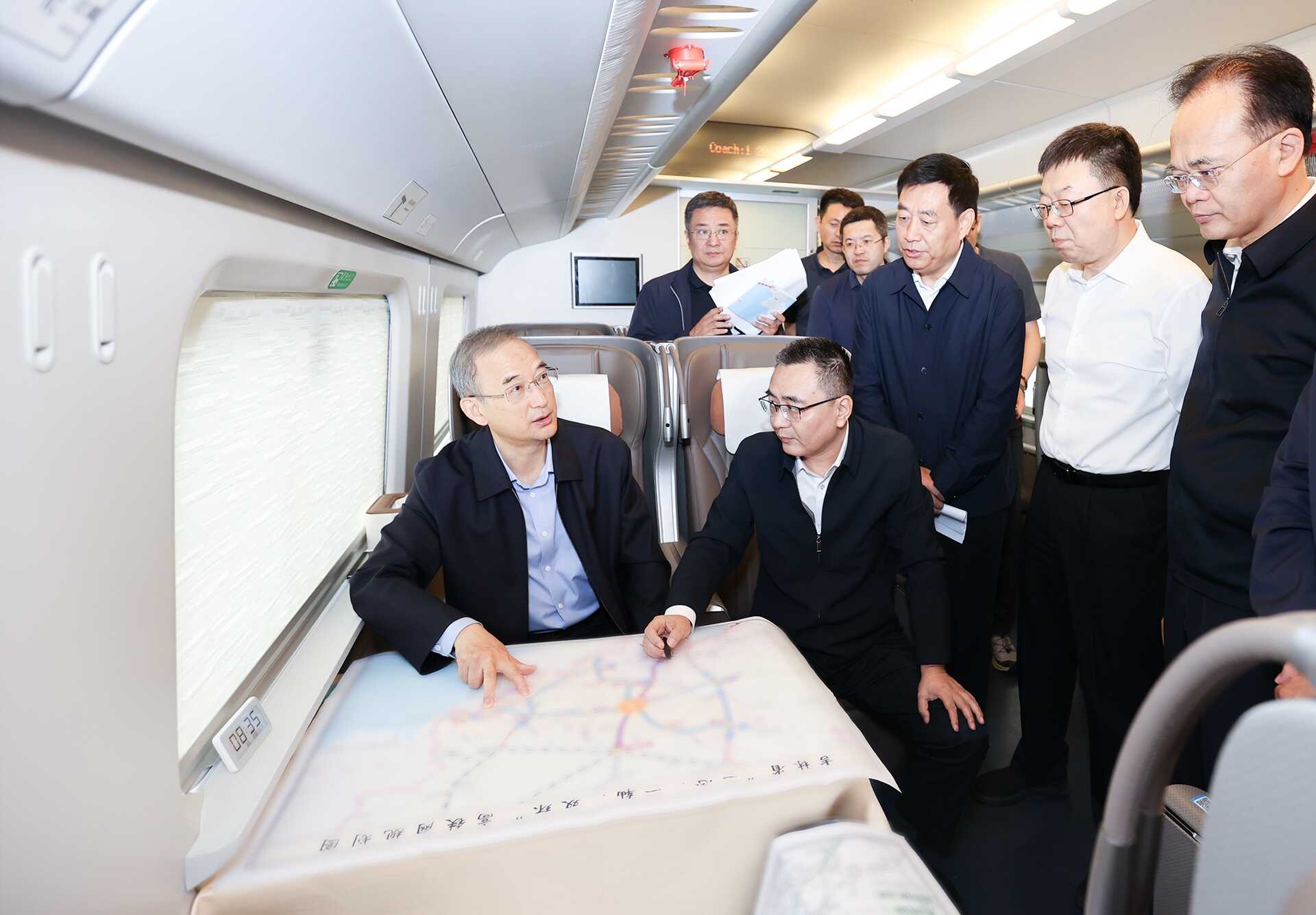 6月16日,省委书记黄强到延边调研,在乘高铁前往延吉市途中专题研究我省铁路“十五五”规划工作。张野摄