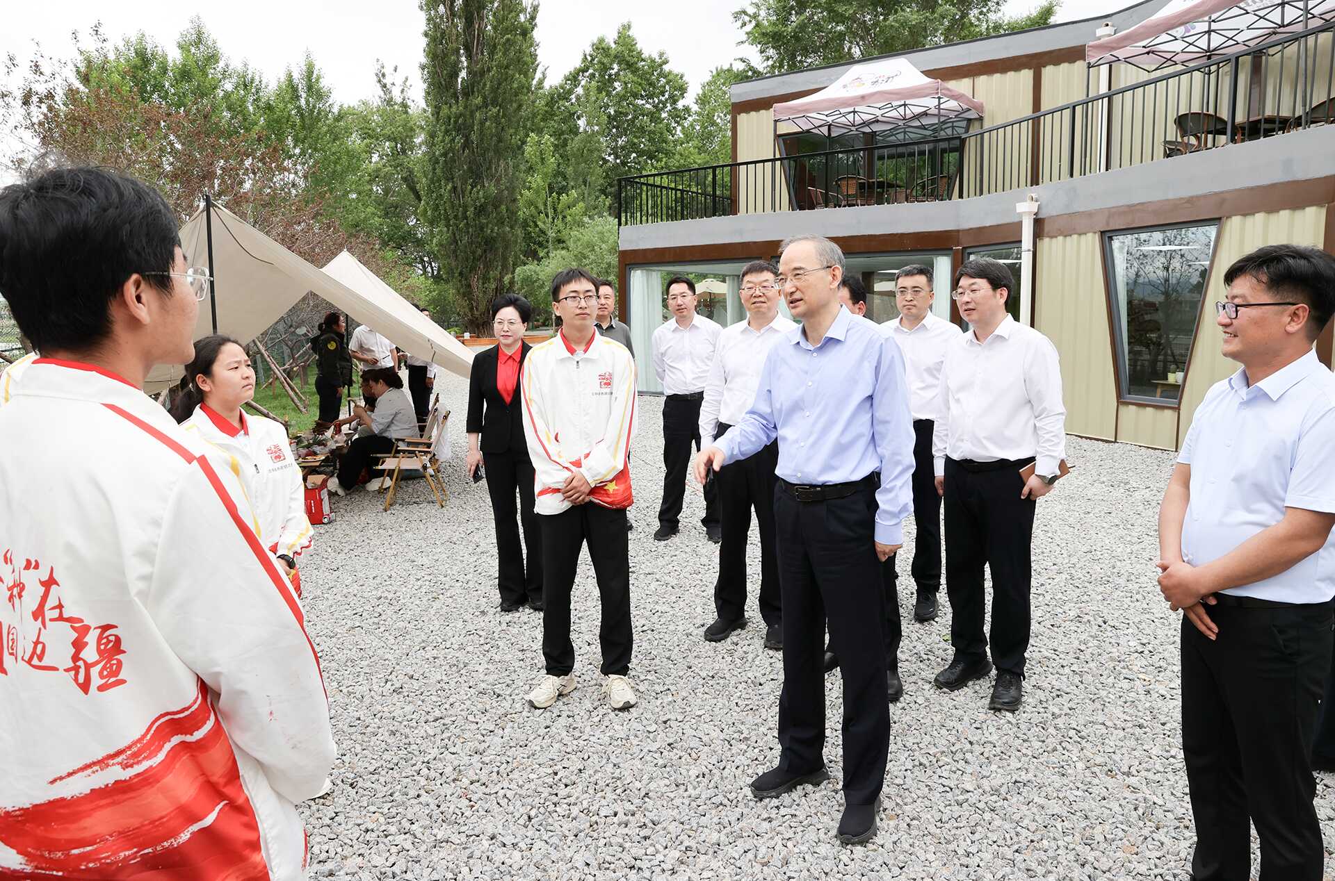 6月16日,省委书记黄强到延边调研,在龙井三合古树咖啡驿站与大学生西部计划志愿者亲切交流。张野摄